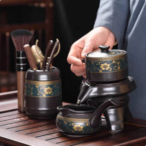 Lazy tea set, teapot for home use, anti-scald teapot, ceramic Kung Fu teacup, stone mill, semi-automatic tea brewing...
