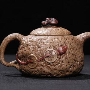 This antique Zisha teapot, made in Taiwan during the Qing Dynasty by the Yucheng kiln in Ningxia, Zhejiang...