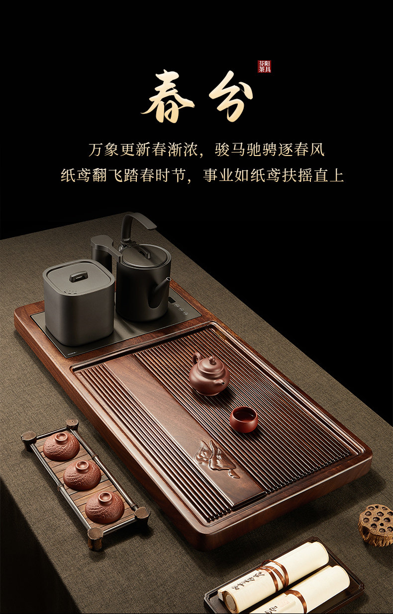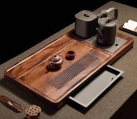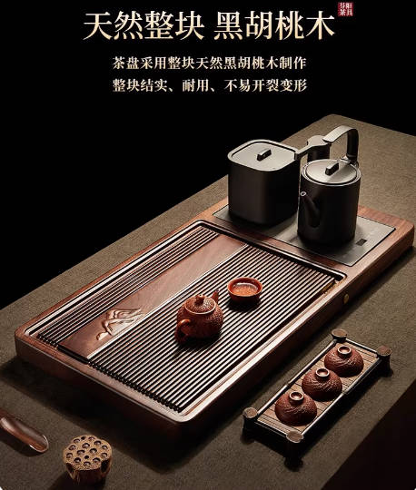 South American walnut wood tea tray and tea set, fully automatic all-in-one set, home and office solid wood tea tray and water storage platform
