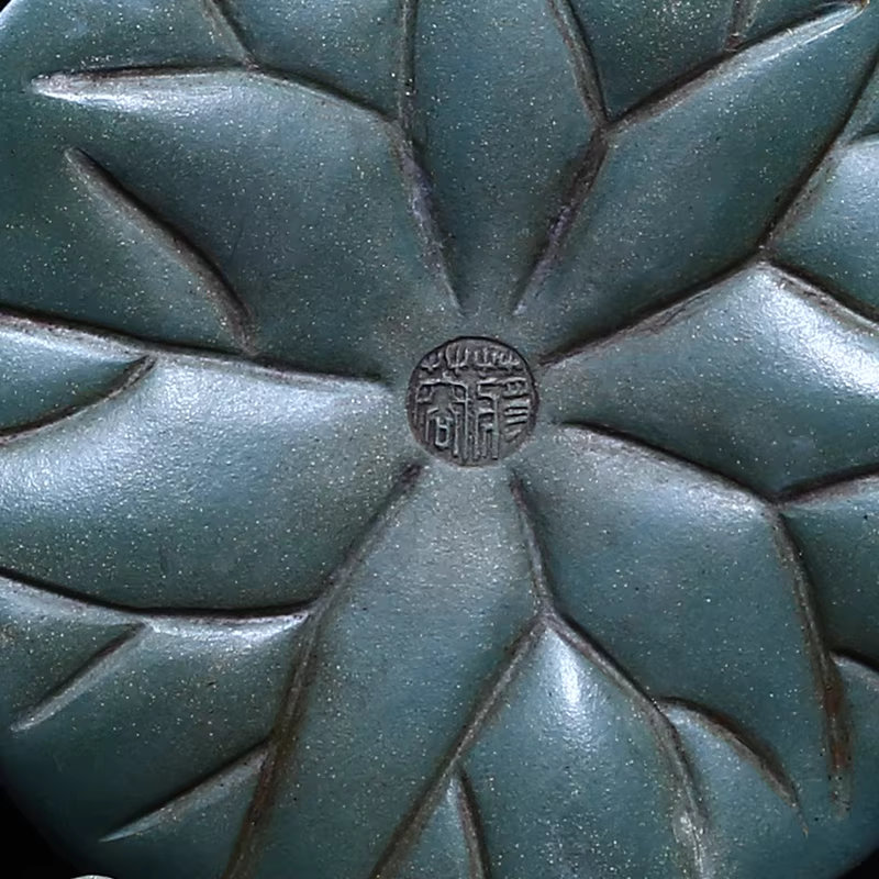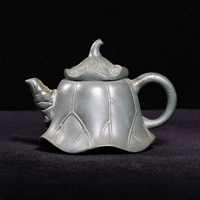 Taiwanese-made antique Yixing teapot, from the First Factory, made by Jiang Rong, a Republic-era green clay teapot, 14 holes, 200cm, small lotus-shaped teapot. A high-quality piece from Taiwan, repatriated from the Nationalist government.