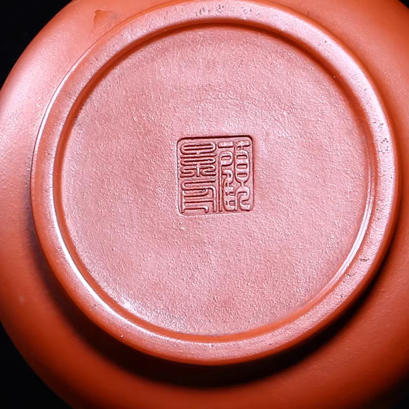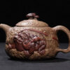 Taiwanese-made antique Yixing teapot, from Factory No. 1, made by Gu Jingzhou, with red skin and dragon design, 7 holes, 500c, engraved and painted.