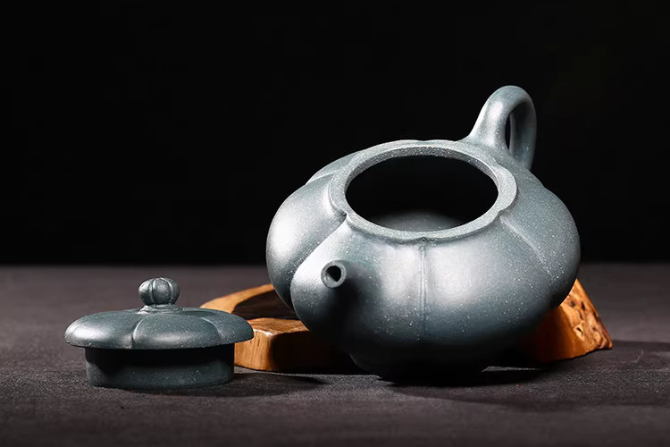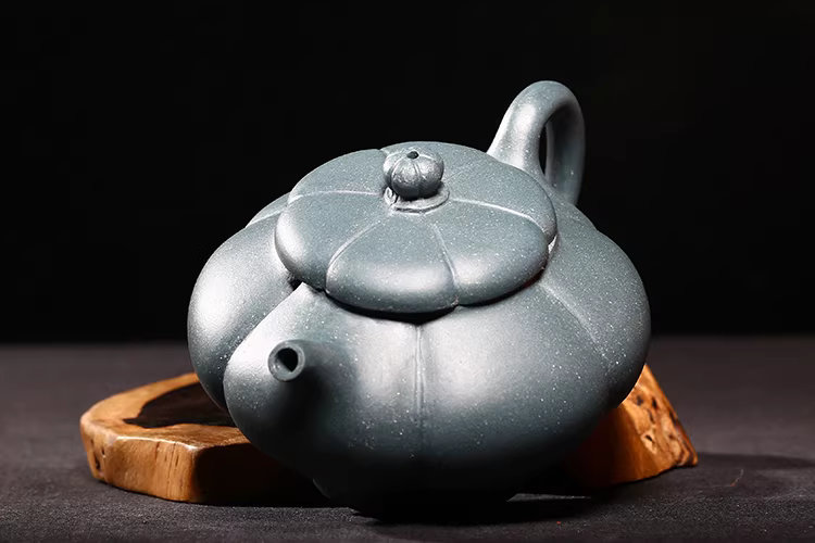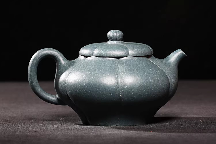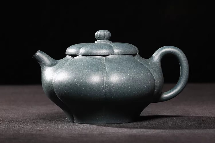 台灣回流老紫砂壺宜興名家早期馮桂林民國綠泥全手工葵笑櫻壺
