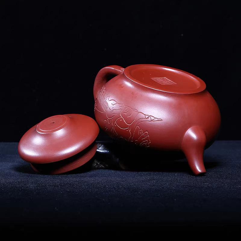 Taiwanese antique Yixing teapots repatriated from Taiwan, early factory No. 1, made by Gu Jingzhou, Dragon Blood Sand, 9-hole, 480c, hand-carved Dayu teapot.
