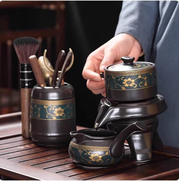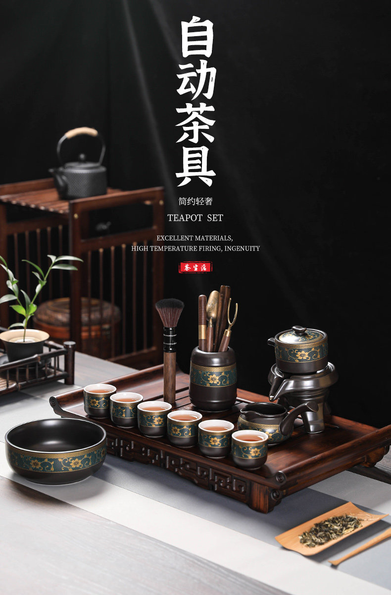 Lazy person’s tea set, home tea drinking teapot, anti-scalding teapot, ceramic Kung Fu tea cup, stone mill, semi-automatic tea brewing device