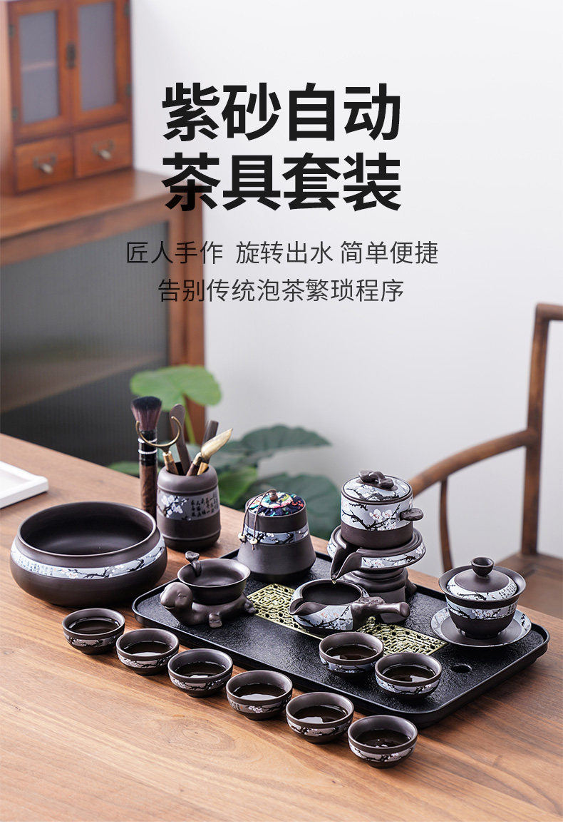 This premium purple clay automatic Kung Fu tea set is simple and elegant, suitable for home use, comes with a convenient travel bag, and is ideal as a gift.